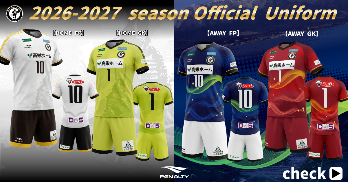 NEWS 2026-2027シーズン オフィシャルユニフォーム発表 2026シーズン 背番号発表 2/14日 トレーニングマッチ結果。 2026シーズン スローガン発表。 公開トレーニングマッチのお知らせ。 公開TRM中止のお知らせ (2/8日 vs FC ISE-SHIMA) 公開トレーニングマッチのお知らせ。 2/1日 トレーニングマッチ詳細。 SUPPORTED BY AND YOU