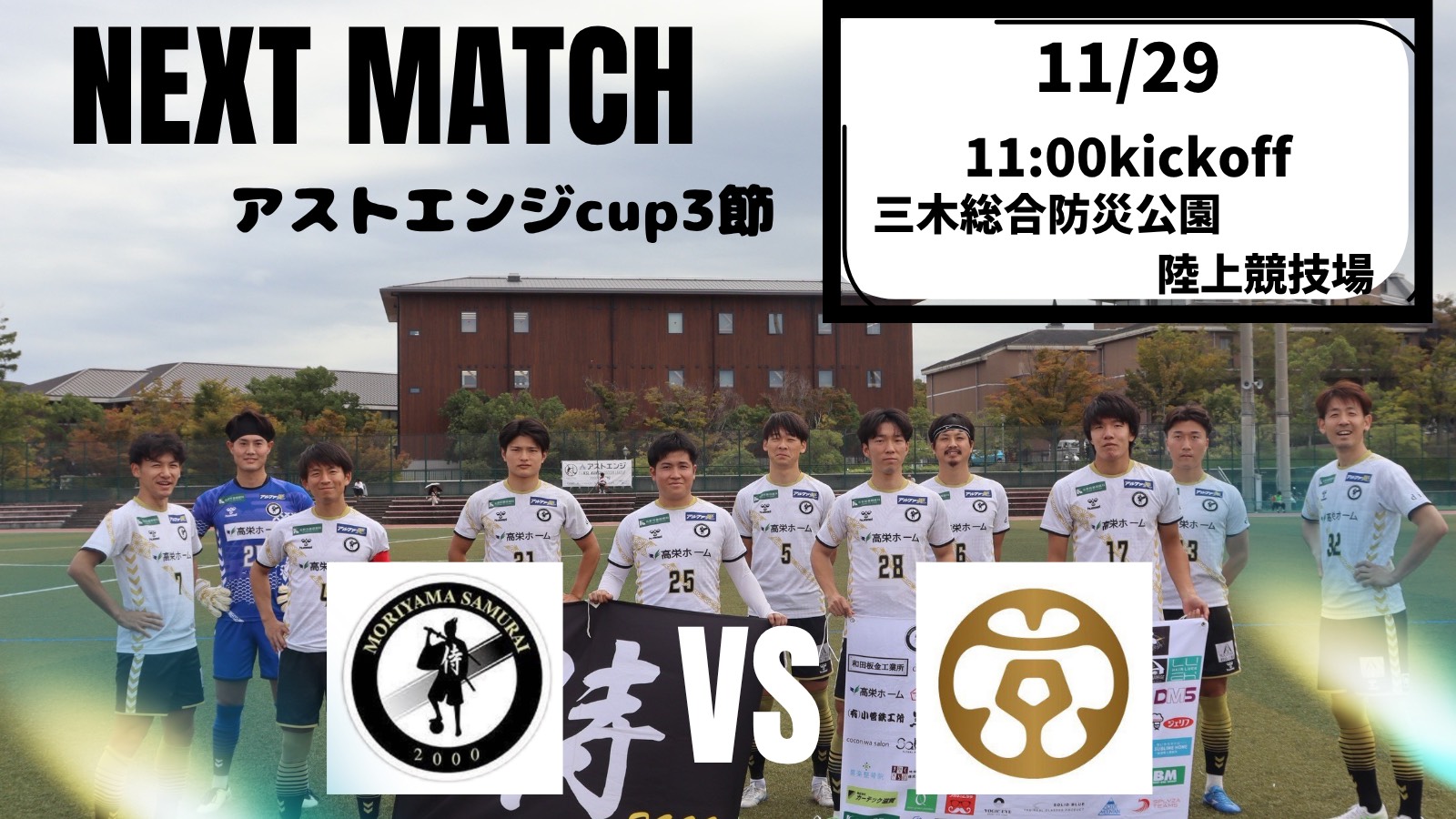 公式戦案内。The KSL アストエンジCup 3節 2025年11月27日 / samurai 今週行います、公式戦案内です。 The KSL アストエンジCUP グループリーグ 3節 11月29日 土曜日 【相手】おこしやす京都 【会場】三木総合防災運動公園陸上競技場(兵庫県三木市) 【時間】11:00キックオフ 会場詳細はコチラ NEXT GAME 過去の投稿へ 2026シーズンチームセレクション開催のお知らせ。