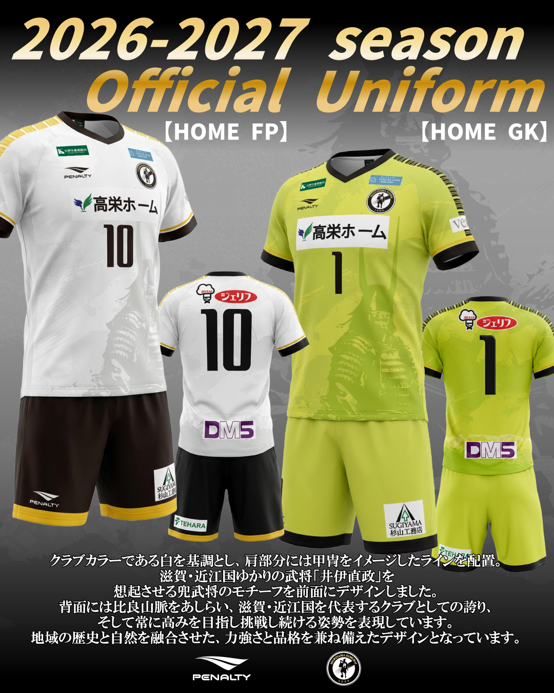 背面には比良山脈をあしらい、滋賀・近江国を代表するクラブとしての誇り、そして常に高みを目指し挑戦し続ける姿勢を表現しています。