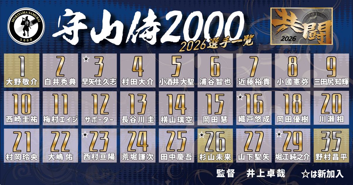 今シーズンを戦う 守山侍2000 の選手背番号発表です!!